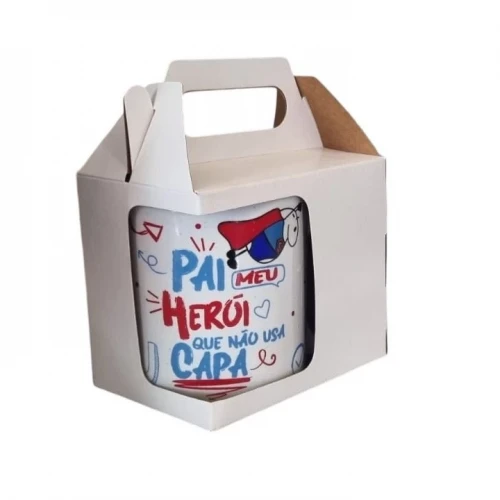 CAIXA PARA CANECA DUPLA FACE COM ALÇA E JANELA LATERAL
